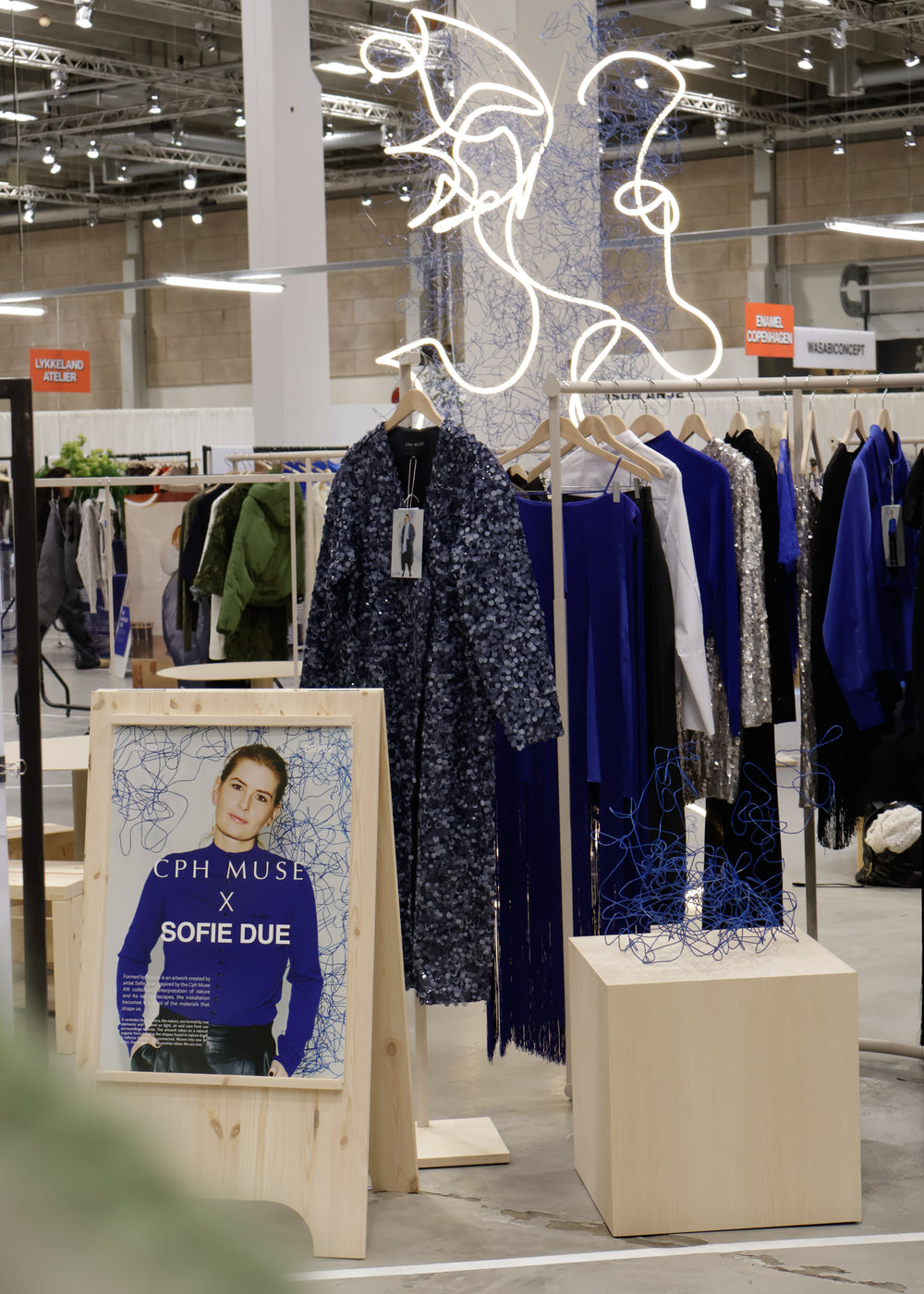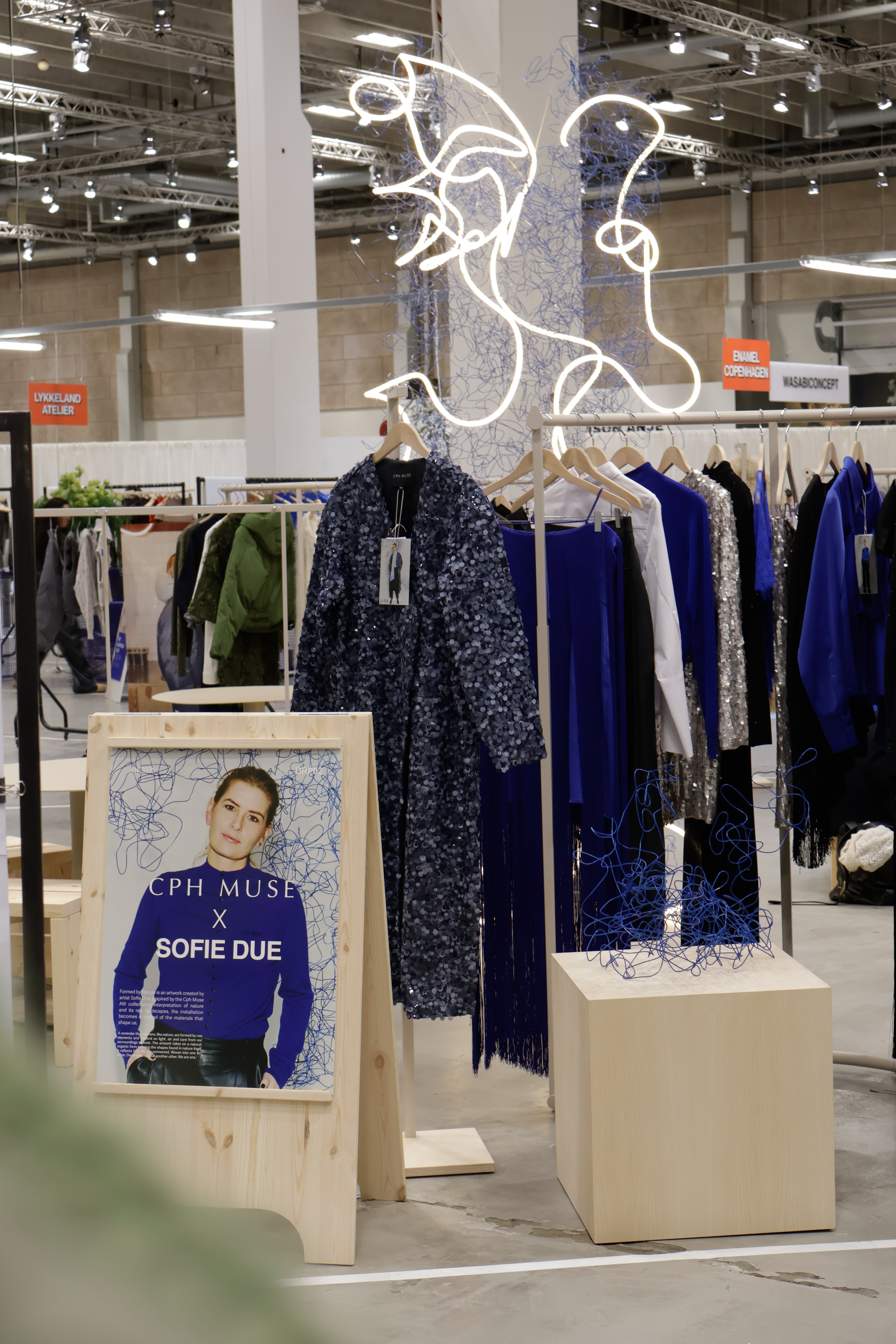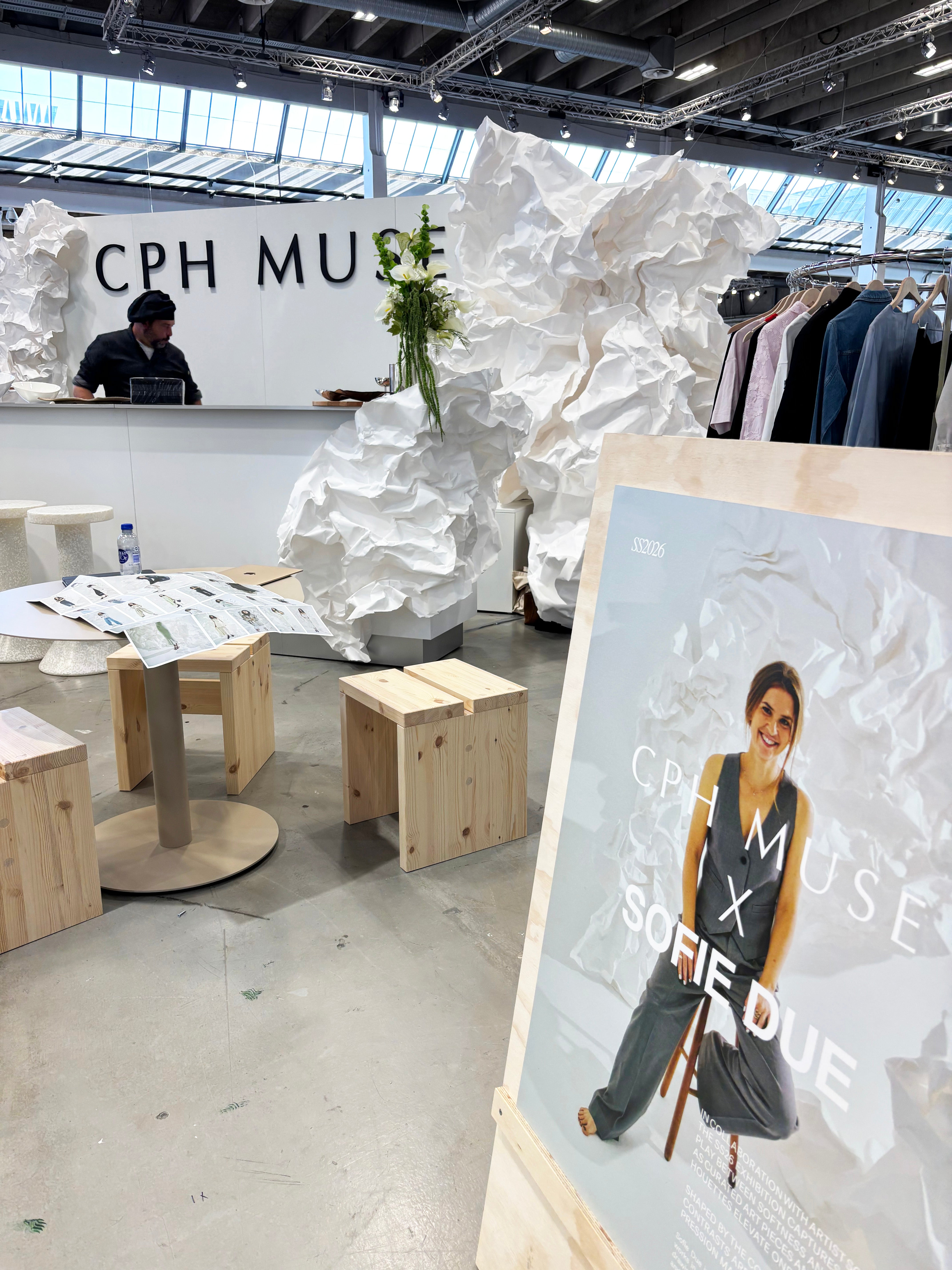 "I samarbejde med kunstneren Sofie Due indfanger SS26-udstillingen samspillet mellem blødhed og struktur, hvor kuraterede kunstværker og Cph Muse-silhuetter løfter hinanden. Formet af lysets konturer afsløres stille kontraster - et taktilt udtryk skabt til at bevæge sig med dig."