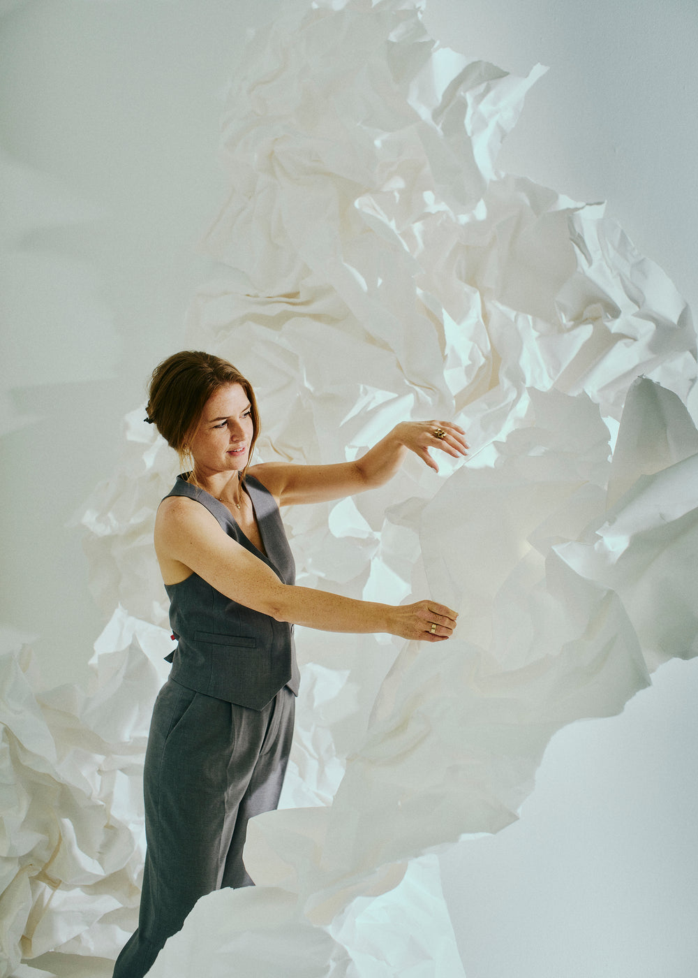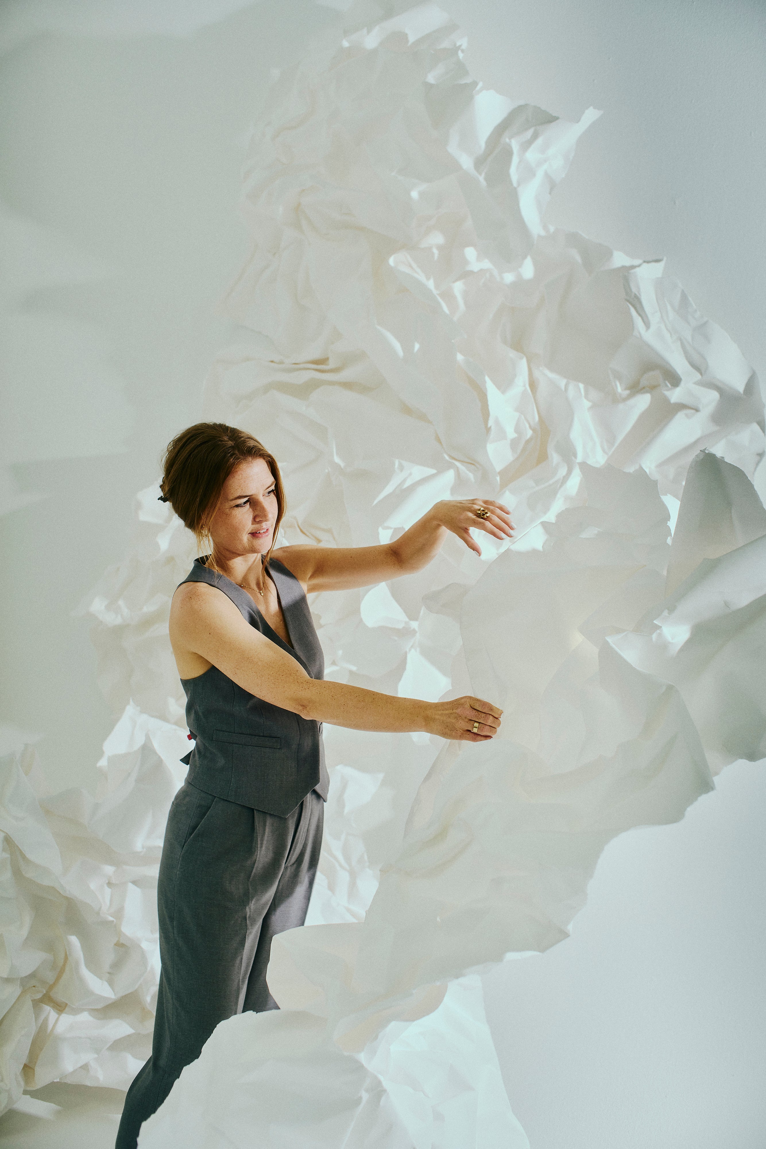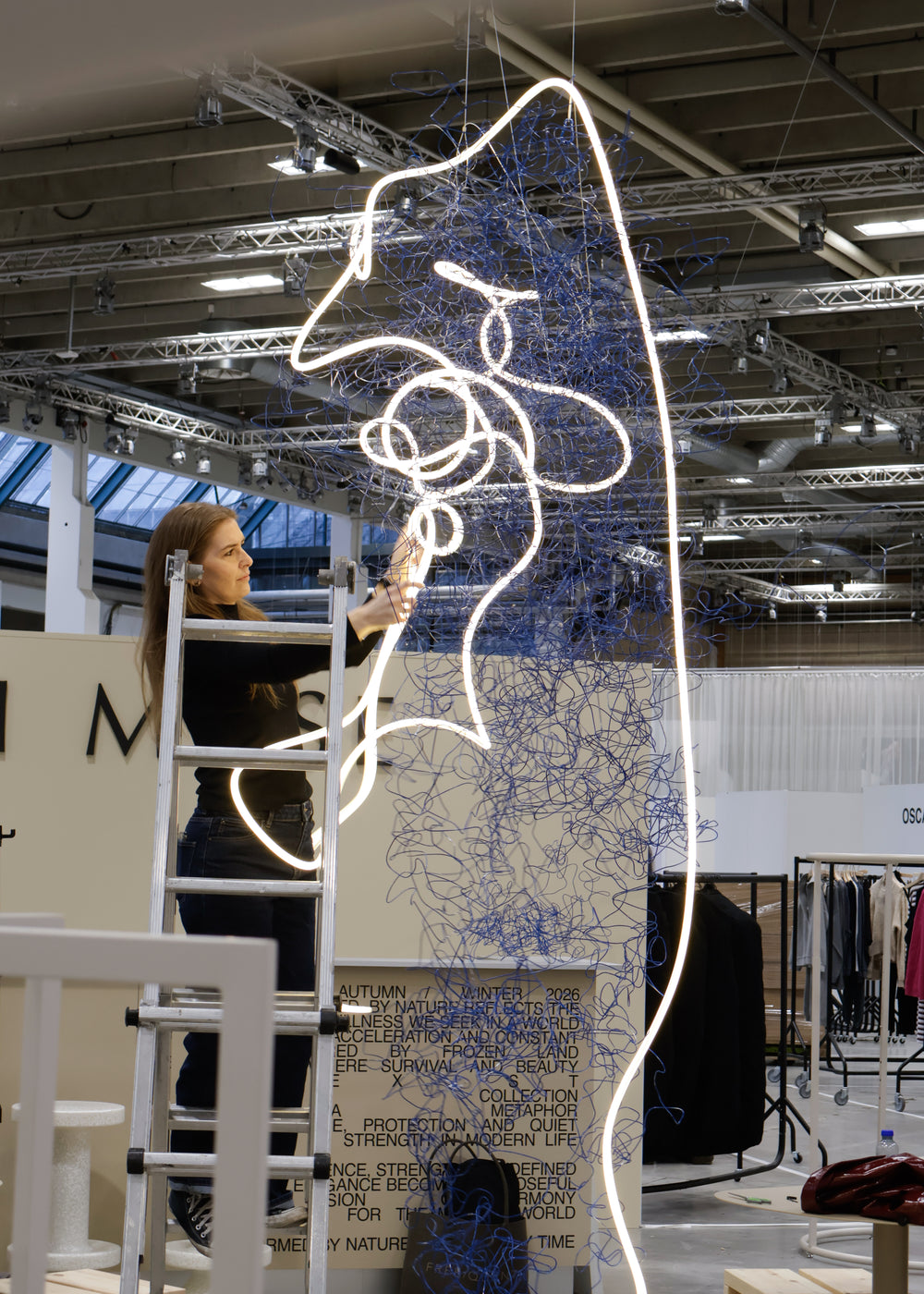 "I samarbejde med kunstneren Sofie Due indfanger SS26-udstillingen samspillet mellem blødhed og struktur, hvor kuraterede kunstværker og Cph Muse-silhuetter løfter hinanden. Formet af lysets konturer afsløres stille kontraster - et taktilt udtryk skabt til at bevæge sig med dig."